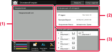 например, отсутствия тонера или ошибки передачи, здесь отображается