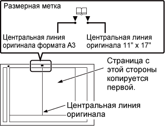 Эта функция позволяет повторно копировать на бумагу формата A4 (8-1/2" x 11") или A3 (11" x 17") без изменения масштаба оригинала. Можно выбрать один из следующих пяти форматов оригинала.