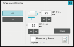 Коснитесь кнопки [On] и укажите нужный размер оригинала.