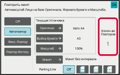 РЕЖИМ КОПИРОВАНИЯКоснитесь количества оригиналов, которые вы хотите скопировать одновременно, и выберите кнопку макета.