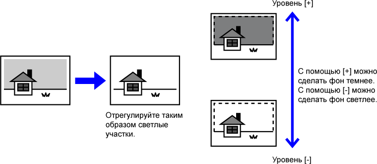 При изменении уровня [Настройка Фона] в сторону [+] фон становится