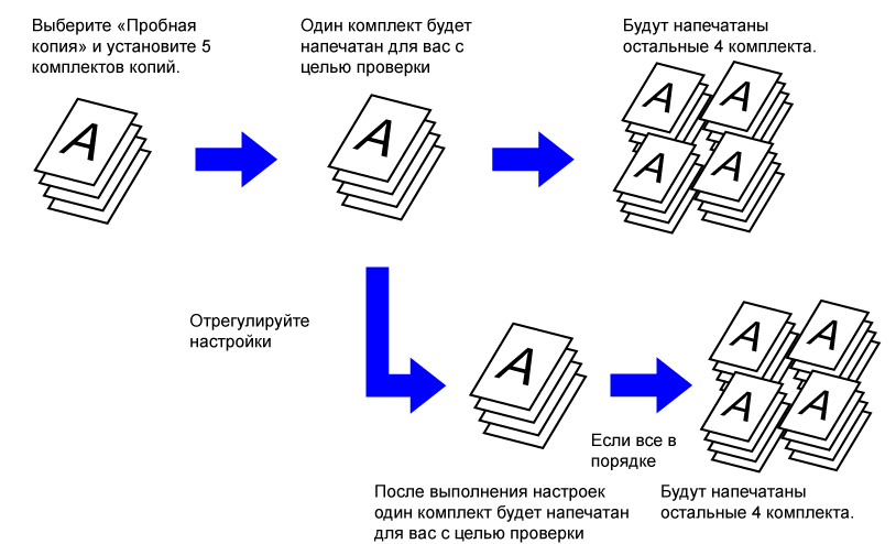 Сделайте один комплект копий.Проверьте результаты копирования. Если проблем не будет обнаружено, коснитесь кнопки [Пуск Печатать].
