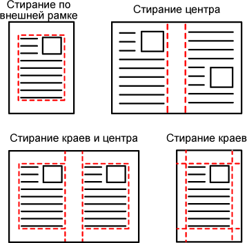 Режимы стирания (Стирание по внешней рамке, Стирание в центре, Стирание