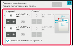 Коснитесь области с указанием расстояния перемещения на лицевой или обратной стороне, затем введите расстояние с помощью цифровых кнопок.Разместите оригинал.