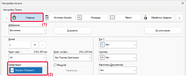 бумаге, которую можно загрузить только в одной ориентации (например,