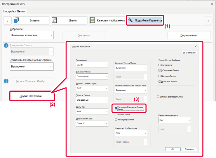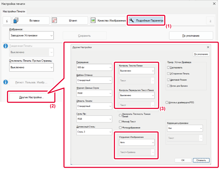 Границы символов текста и графических изображений можно делать более или менее резкими. Авто: Выполнение оптимального улучшения изображения. Выкл.: Улучшение изображения не применяется. Резкое: Улучшение изображения применяется резко. Мягкое: Улучшение изображения применяется мягко. |