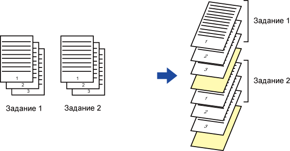 Например, если смешаны печатные изображения формата A4 (8-1/2" × 11") и A3 (11" × 17"), только бумага формата A3 (11" × 17") складывается и изменяется на бумагу формата A4 (8-1/2" × 11"). Копии выводятся лист за листом. |