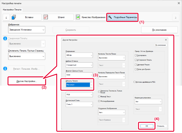 Эта функция позволяет выбрать обработку содержащихся в печатаемом