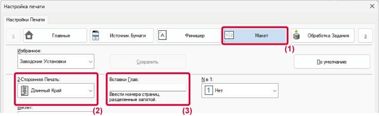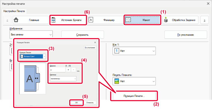 на табулированной бумаге. В разделе [Позиция Печати] на вкладке [Макет]