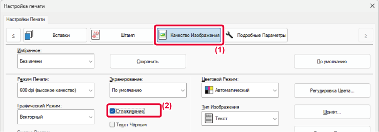 с применением технологий повышения разрешения (RET). Изображения печатаются
