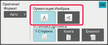 Выполнив настройку, коснитесьКоснитесь кнопки [Ориентация Изображ.], соответствующей ориентации размещенного оригинала.