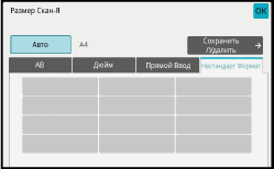 Коснитесь кнопки [Размер Скан-Я], затем коснитесь вкладки [Нестандарт Формат].