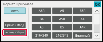Выполнив настройку, коснитесьПри сканировании оригинала нестандартного