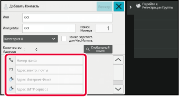 Коснитесь поля [Номер факса], [Адрес электр. почты], [Адрес Интернет-Факса],
