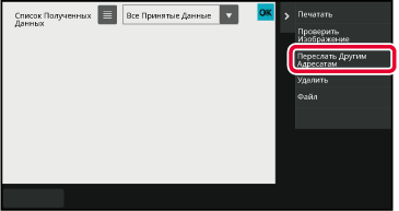 Будет отображен список принятых данных.Коснитесь кнопки полученных данных, которые нужно переслать, затем коснитесь кнопки [Переслать Другим Адресатам].