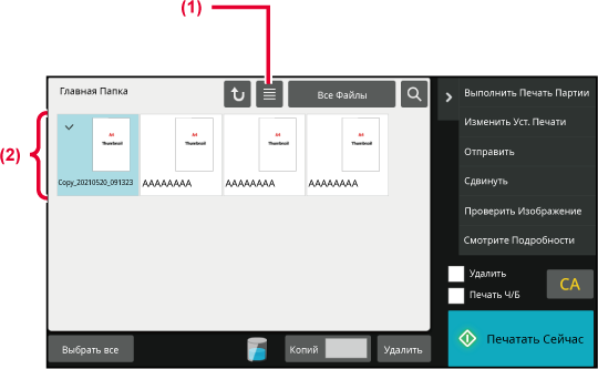 - Выбор или отмена выбора всех файлов. Прикосновение к