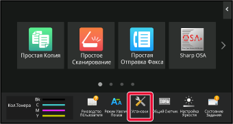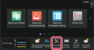В "Установки" можно управлять разными функциями, упрощающими использование аппарата, такими как настройки каждой функции по умолчанию, настройки сетевого соединения, проверка журнала рабочегосостояния.