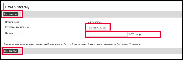 • Информацию о процедуре входа в систему при включенной аутентификации пользователей см. в разделе " АУТЕНТИФИКАЦИЯ ПОЛЬЗОВАТЕЛЯ".