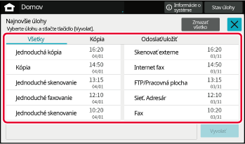 Keď klepnete na tlačidlo [Východzia obrazovka], na dotykovom