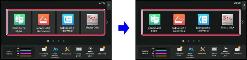 Nastavenia sa uložia v zariadení a zaradia sa do používania.Pozíciu tlačidla [Východzia obrazovka] môžete