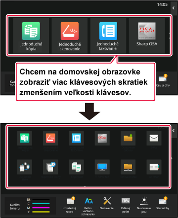 ktorý zmenšuje veľkosť zobrazených skratiek, aby sa dali pridať