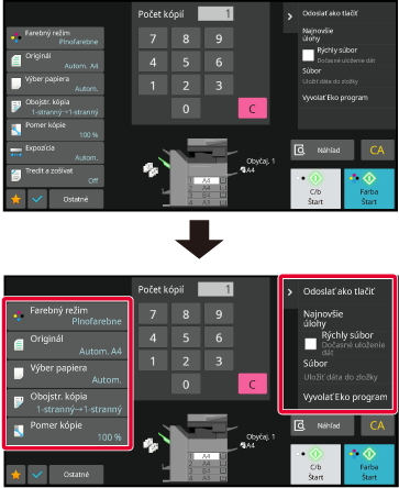Nastavenia sa uložia v zariadení a zaradia sa do používania.Na obrazovke normálneho režimu, ako je kopírovanie