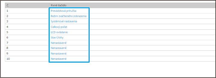 Nové fixné tlačidlo pridáte kliknutím na položku [Nenastavené].Vyberte funkciu, ktorú chcete pridať, a kliknite na tlačidlo [Odoslať].