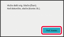 Umiestnite ďalší originál a klepnite na tlačidlo [Farba Štart] alebo [C/b Štart] na naskenovanie originálu.