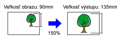 Pomer zmenšenia alebo zväčšenia sa automaticky vyberie na základe veľkosti originálu a vybranej veľkosti papiera.Táto časť vysvetľuje, ako zadať akýkoľvek