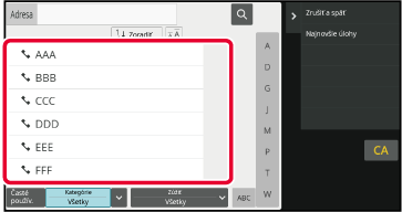 VÝBER ZOZNAMU "KONTAKTY" ALEBO "SKUPINA"Vložte originál.