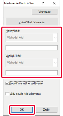 Kód účtovania môžete zadať pomocou ovládača tlačiarne