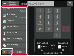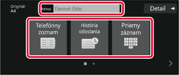 Klepnutím na číselné tlačidlá zadajte priamo číslo cieľa alebo vyhľadajte a získajte adresár alebo číslo.Vykonajte nastavenia.