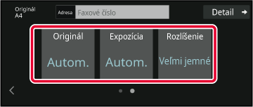 Zadajte veľkosť skenovania originálu, expozíciu, rozlíšenie, atď.Odošlite originál.