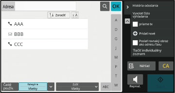 Ak chcete zobraziť adresár, ťuknite na tlačidlo [Adresár]