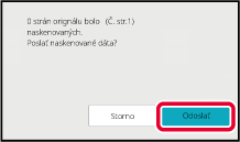 Zaznie pípnutie, ktoré oznamuje dokončenie skenovania.Po dokončení skenovania overte počet naskenovaných hárkov originálu a počet hárkov na odoslanie, a dotknutím sa tlačidla [OK] spustite prenos.