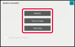 Správy o transakcii sa vytlačia na základe podmienok nastavených