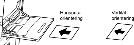 fyllas på i handinmatningsfacket med den angivna riktningen. Följ