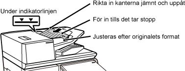 Bläddra igenom originalen innan du lägger i dem. Om du inte bläddrar igenom originalen kan flera ark matas in samtidigt så att det blir stopp.Lägg i originalet.