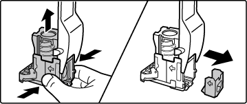 Ta ut den tomma häftklammerkassetten ur häftklammerbehållaren.