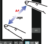 Nypa ihop Tryck på skärmen med två fingrar och dra dem mot varandra. Används när du vill förminska läsaren och förhandsgranskningsskärmen. |
