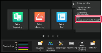 Öppna åtgärdspanelen på startskärmen och tryck på [Key Transparencyinställningar].