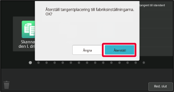 Ange administratörslösenordet.Tryck på [Åters. tangent till standard] på åtgärdspanelen.