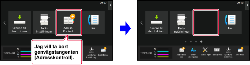 Snabbknappen flyttas till den valda platsen.Tryck på [Logga ut] när du har slutfört inställningarna.