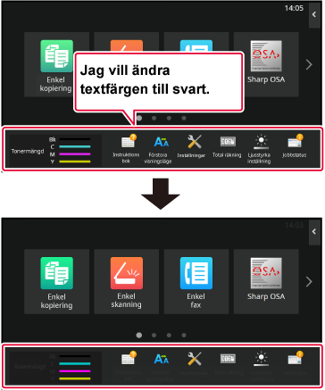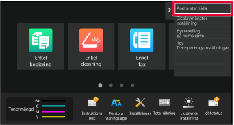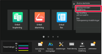 Inställningarna lagras i maskinen och aktiveras.Du kan ändra läget för knappen [Hemskärm].