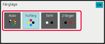 Välj ett färgläge bland Auto, Fullfärg, Svartvitt, 2