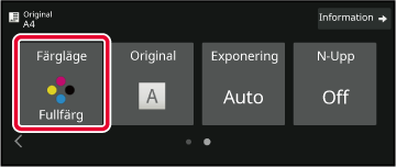 Maskinen avkänner automatiskt om originalen är i färg eller svartvita och ändrar läge enligt detta (fullfärg för färgoriginal och svartvit för svartvita original). |