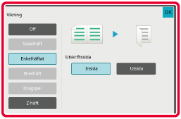 När inställningarna är klara trycker du på [OK].Denna funktion används för vikning av kopior