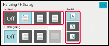 Tryck på [Häftning / Hålsslag].