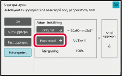 Tryck på knapparna [Original] och [Pappersval] för att välja originalformat respektive pappersformat.