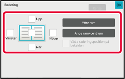 Placera originalet i dokumentinmatningsfacket i den automatiska dokumentmataren eller på dokumentglaset.Tryck på [Övrigt] och sedan på [Radering].